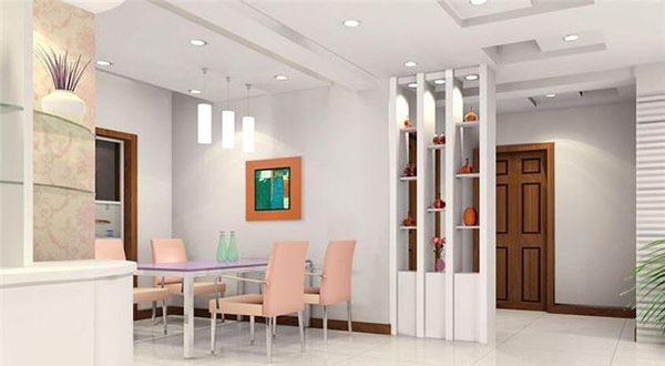 该形式主要是利用低柜式家具来做隔断体,优点就是既可以储放物品,又可以起到限定空间的作用。同时低柜上面的空间还有一段空间,还可以加上一些装饰物,做成一个摆件层
